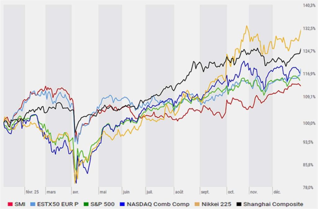 Le marché suisse conserve son caractère défensif. La solidité des grands groupes cotés demeure un pilier, tandis que les petites et moyennes entreprises offrent un potentiel de rattrapage intéressant dans un contexte de normalisation économique.